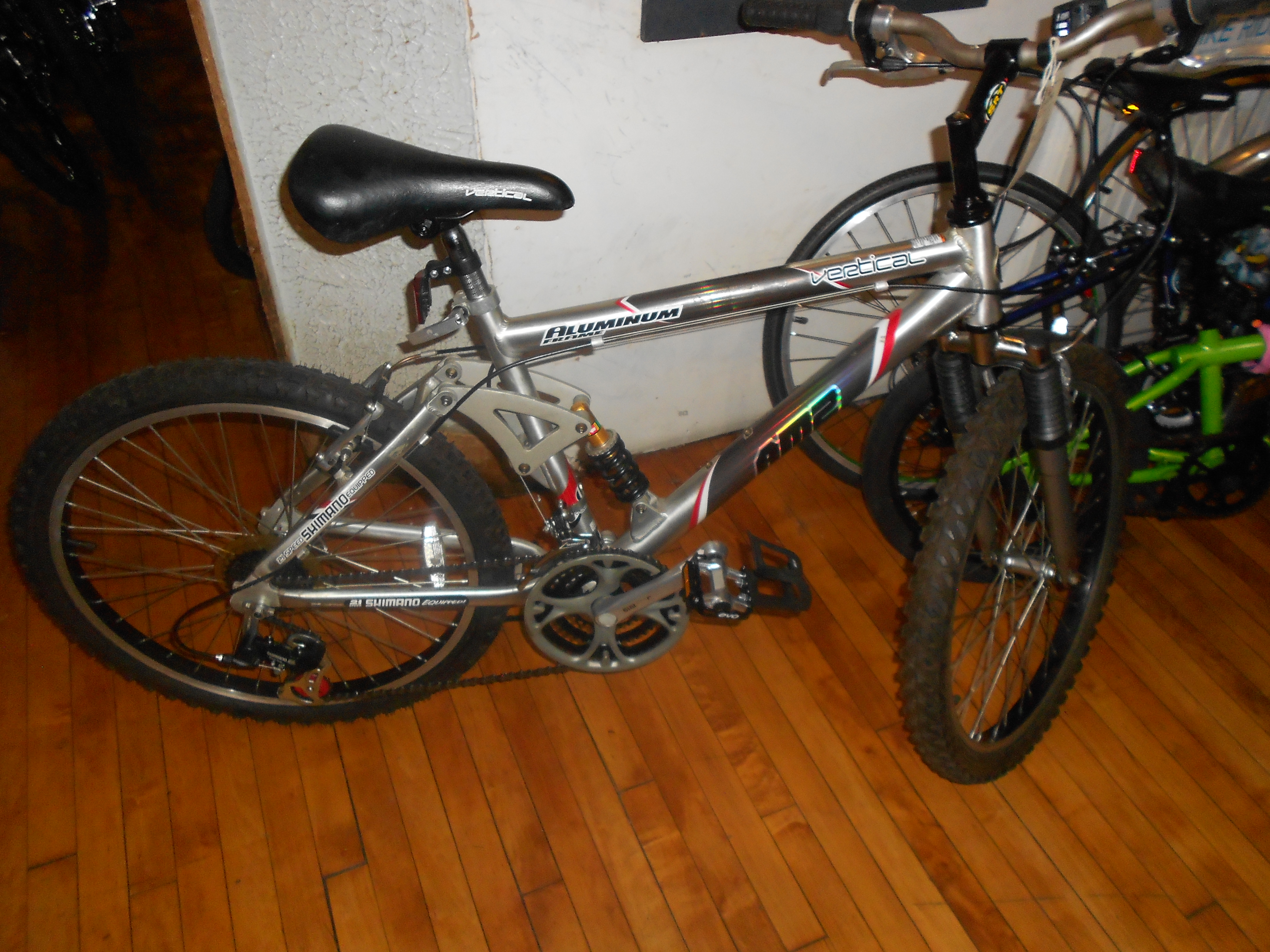 AM2 Vertical Aluminum $300 24″ Wheel Full Suspension as Upgraded with Alloy Body Steel Cage Pedals with Strapless Nylon Mini-Clips-Our Customers Favorite Upgrade! $300 No Details was overlooked as we Lovingly Serviced, Lubricated this Low Mileage Fully Serviced and Upgraded cool Full Suspension perfect for Juveniles and Shorter Adult Full Suspension Bicycle that is Fun to Ride! $300