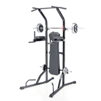 Power tower offers a total body workout targeting upper body and abdominal muscle groups in particular