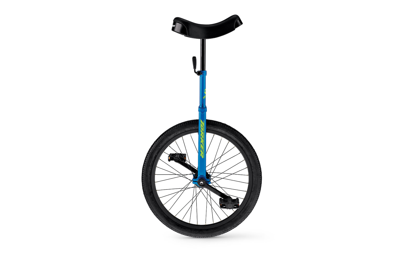 For the past decade more riders have learned how to ride on one wheel aboard a quality Torker Unistar CX. The lugged frame w/ built-in seatpost quick-release and the sturdy main cap-style bearing holder are exceptional Torker features. The comfortable padded saddle w/ built-in scuff guards and contour cranks are additional features that will enhance your first unicycling experience. Available in three wheel sizes 16 20 and 24 and three colors including black highlighter yellow or chrome.