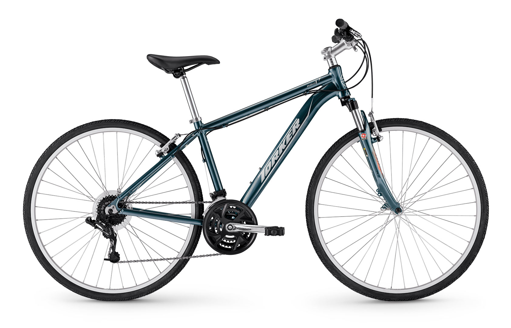 Fitness oriented riders will appreciate the versatility of the Dually 1. Designed for great riding on roads gravel paths and groomed trails. The Dually 1 features 24 speed wide range gearing an upright seating position w/ flat handlebar trigger shifters easy to maintain cantilevered brakes and quick release hubs on a durable alloy rim wheel set.